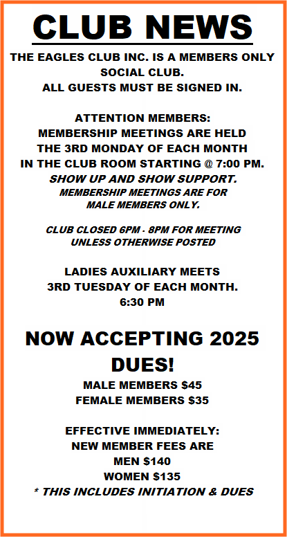 WELCOME TO THE NEW EAGLES CLUB INC. WEBSITE